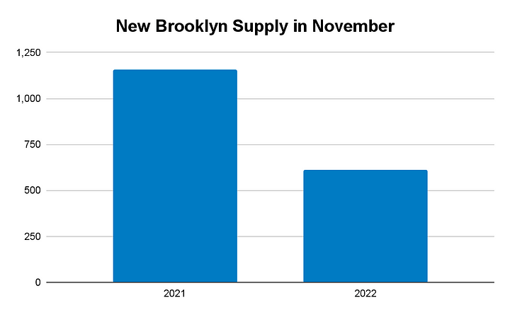 - Because supply became markedly overheated during 2021 and H1–2022 and because price/sf has remained well off the 2015–2019 highs over the past few months (though not yet finalized, November data is proving to be an exception), Brooklyn is currently a strong buyer’s market. Remember, a buyer’s market means that buyers should be rewarded for their patience.