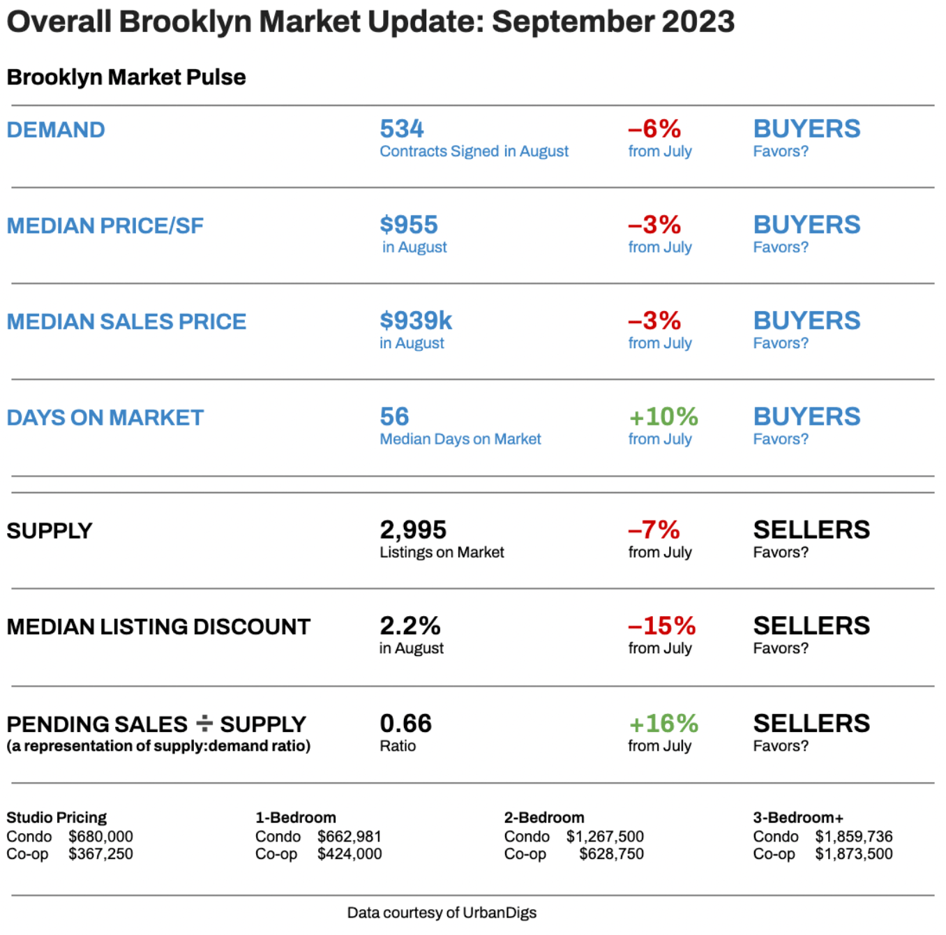 In this comprehensive Brooklyn market update for September 2023, we examine the key metrics, including supply, demand, median prices, and listing discounts. As the transition from summer to fall unfolds, we share insights into whether conditions favor buyers or sellers, ultimately determining which party holds the transactional leverage.