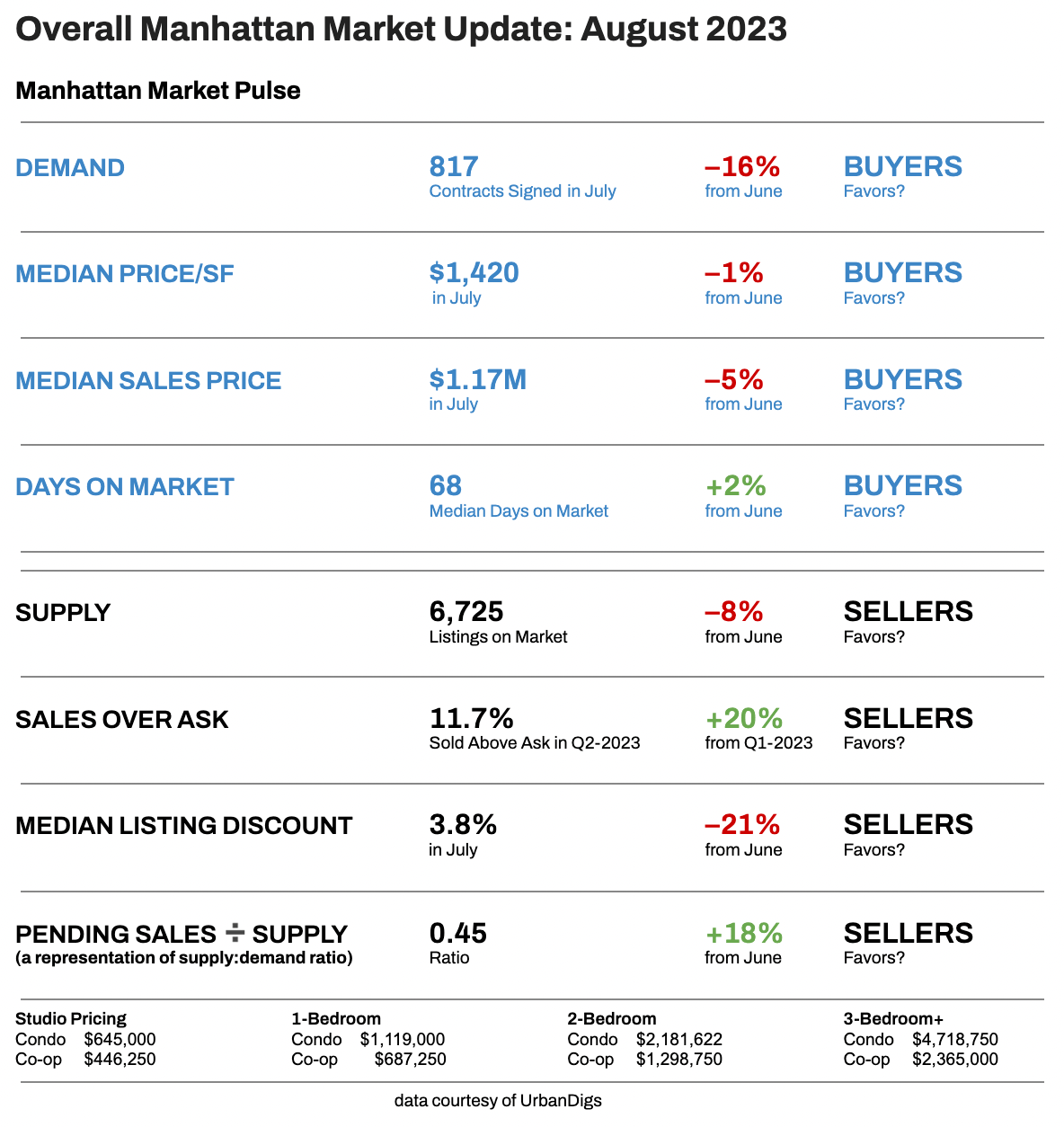 These indicators collectively determine the balance of power between buyers and sellers. Currently, Manhattan is witnessing a subtle shift toward a seller's market, though the scenario continues to evolve dynamically.