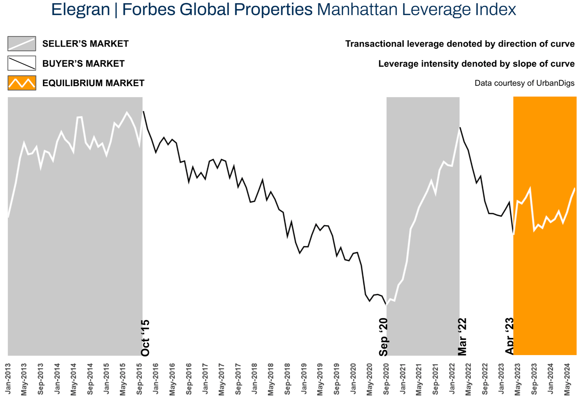 Market Dynamics: The Elegran | Forbes Global Properties Manhattan Leverage Index remains balanced, with a slight advantage for sellers overall. Buyers looking for deals can likely find opportunities by targeting properties on the market for more than three months and those that have had at least one price reduction.