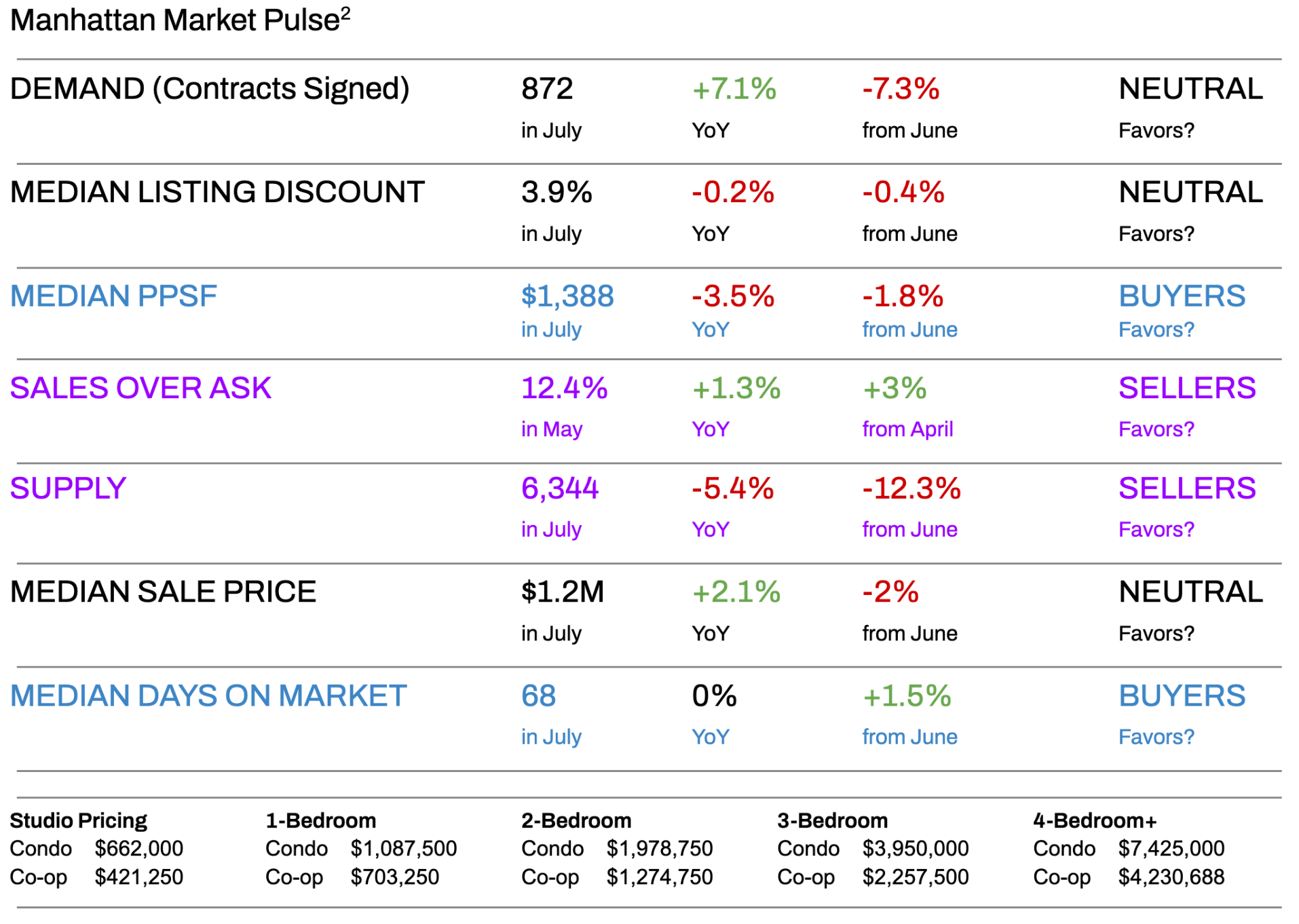 - SELLERS: Manhattan remains a relatively liquid market with consistent demand. However, buyers are educated and selective, meaning well-priced and well-positioned properties sell quickly, while mispositioned properties languish on the market.