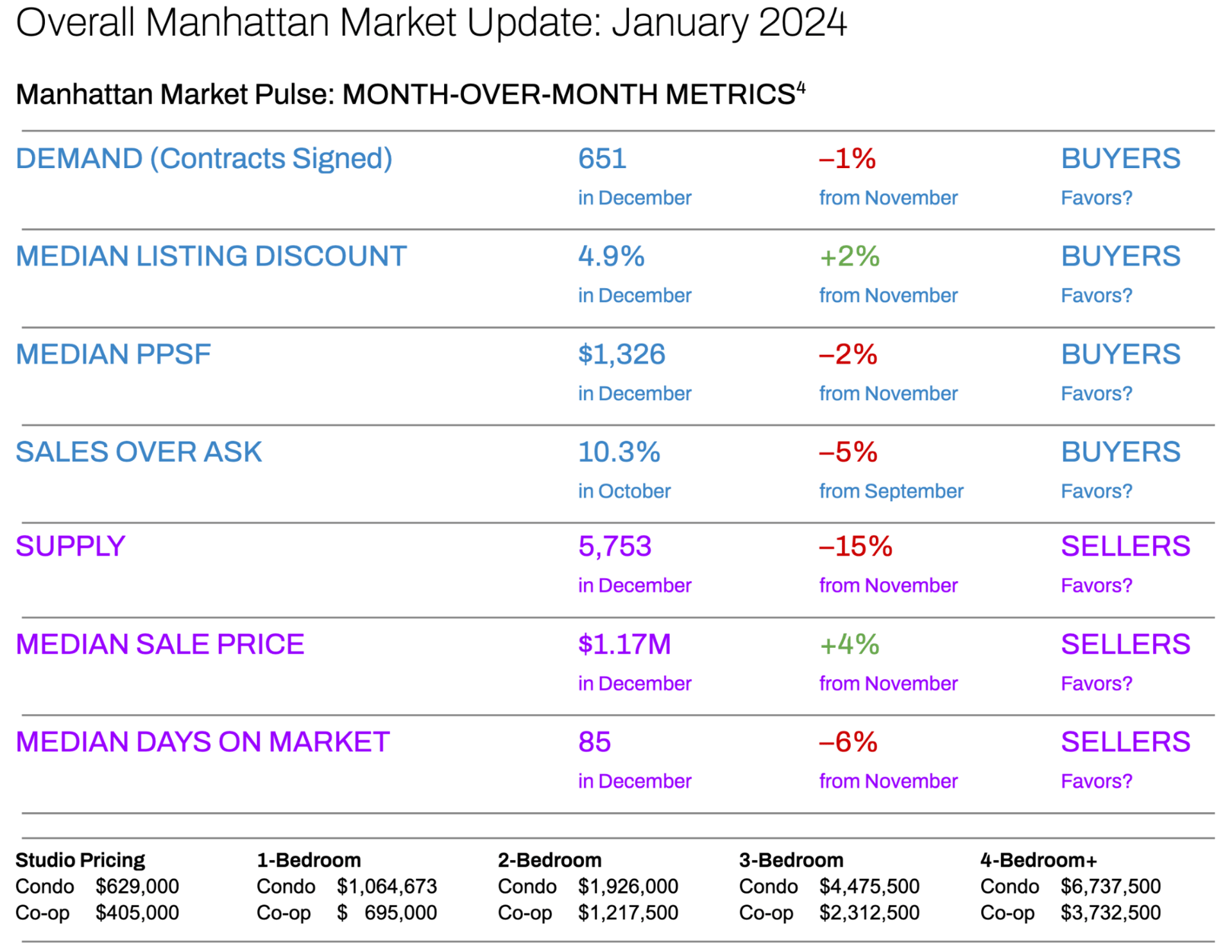 December, a typically quieter month for contract activity in Manhattan, was busier than expected, thanks to declining interest rates, which motivated some buyers to get off the sidelines. Contract activity was 5% higher in December 2023 compared to December 2022 in the borough.