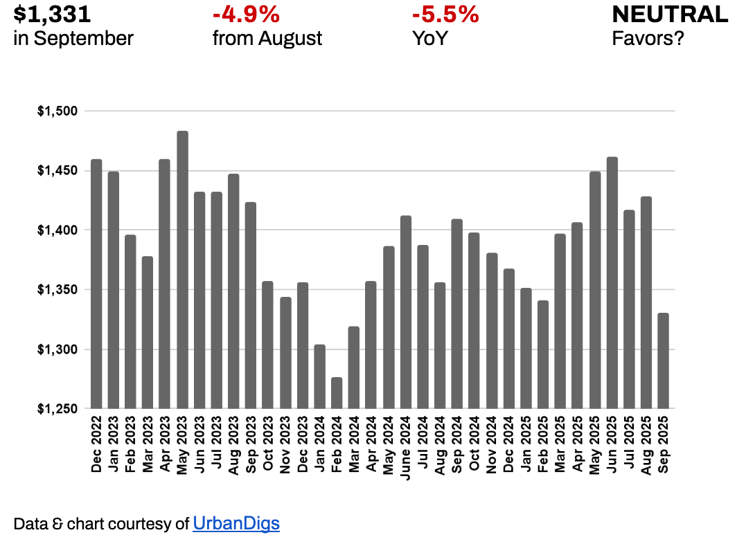 In September, three of the four key levers tipped toward buyers: supply jumped by more than 20%, median prices per square foot softened, and listing discounts ticked higher. Demand, however, held steady, with contract signings slightly below August but still stronger than a year ago. The result? A clear shift toward a buyer-leaning market.