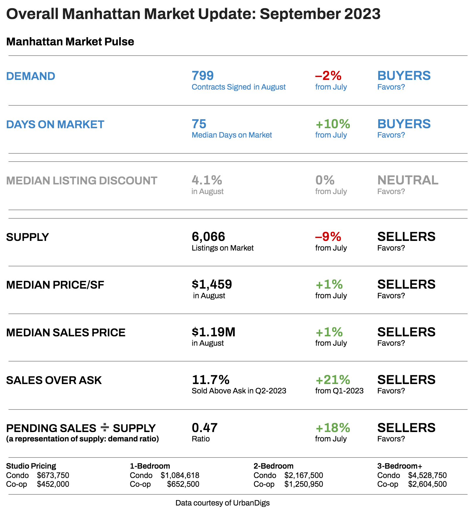 As we scrutinize the data, a clear trend emerges. Since April, our data has consistently reinforced a significant shift in Manhattan's real estate landscape - it's unequivocally a seller's market. As we anticipate the upcoming fall listing season, sellers can take solace in the steadfastness of this trend, knowing they are entering the market from a position of strength.