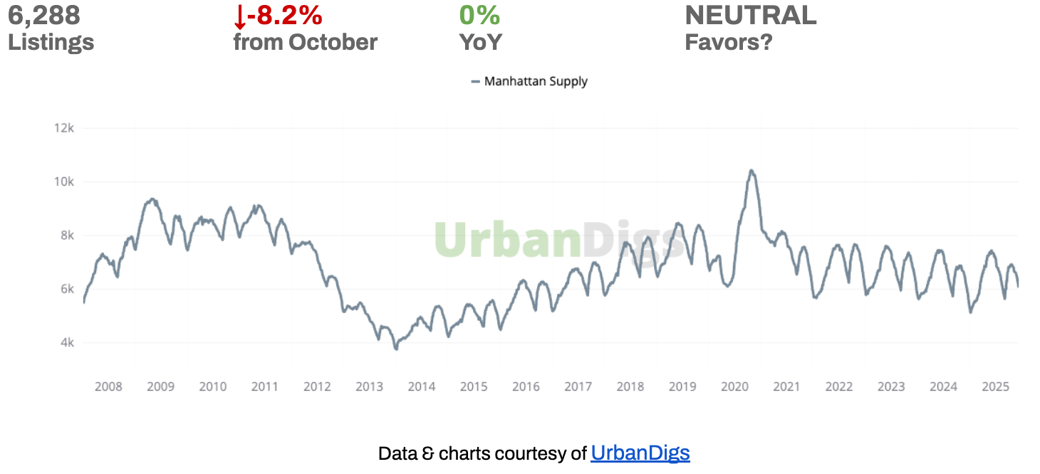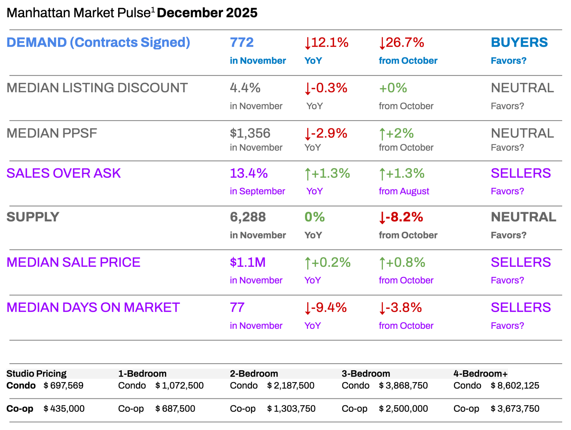 Overall, Manhattan closes out 2025 on stable footing: cooled activity, firm pricing, and tight inventory signal a cautiously optimistic runway into 2026.