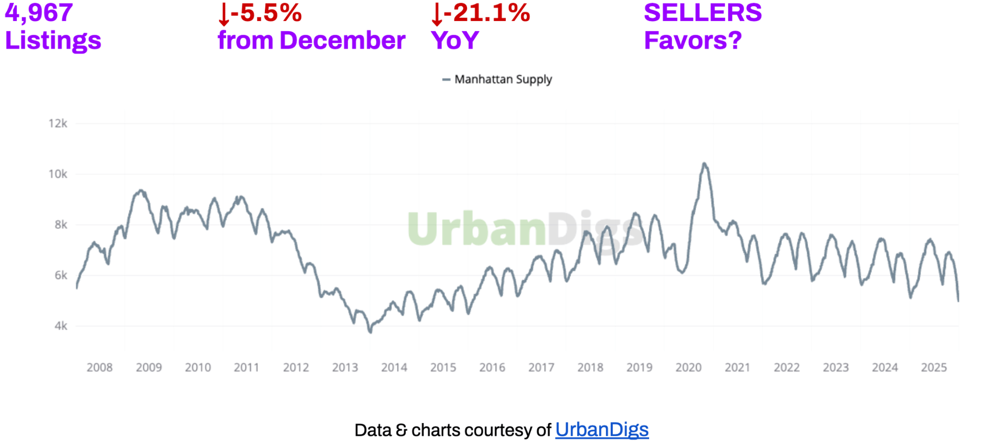 Manhattan Supply: Inventory Tightens Further After Holidays into 2026