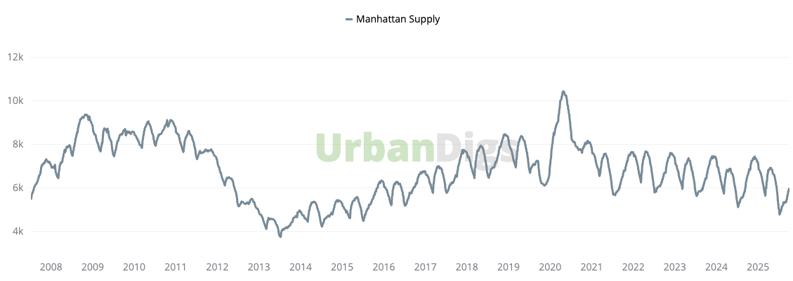 What is different this cycle is structural undersupply. Manhattan inventory remains well below 2017–2019 averages, limiting the probability of distress-driven repricing.