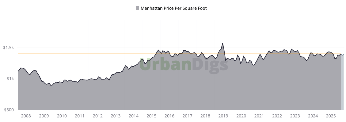 The more important signal is the longer trend: Manhattan's median PPSF has remained in a remarkably tight range for over a decade — a testament to the market's structural price stability and resistance to the boom-bust volatility seen in other U.S. metros. For buyers, this means the floor is real. For sellers, it means sky-high aspirational pricing without market support will not be rewarded.