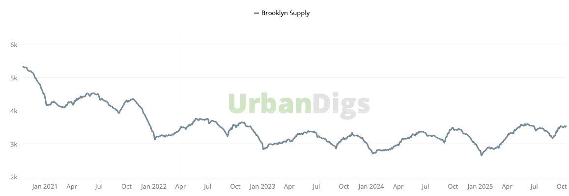 Brooklyn’s overall supply rose to 3,565 homes (+1.1% WoW, +3.8% YoY), marking its second consecutive week of gains. However, new listings slipped to 185 units (–5.6% WoW, –6% YoY) - a mild retreat likely influenced by the shortened work week.