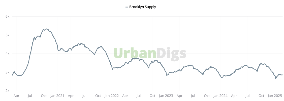 Brooklyn’s market gained momentum this week, with 186 new listings—a 36% jump from last week. Yet, high absorption rates kept total inventory growth minimal, up just 0.56% to 2,868 listings. The swift turnover of new inventory highlights Brooklyn’s strong market fundamentals and sustained buyer demand, reinforcing the borough’s competitive landscape.