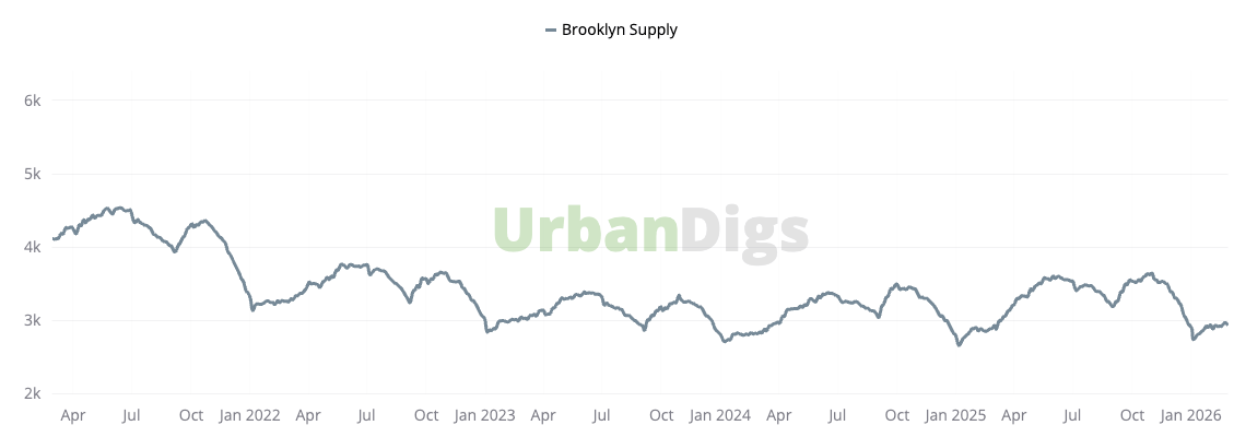 Brooklyn supply remains orderly, but near-term listing activity slowed meaningfully this week.