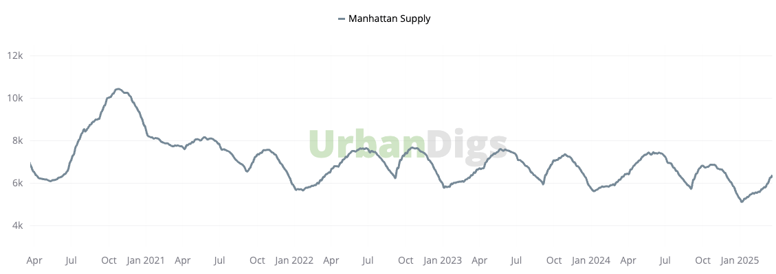 Inventory in Manhattan climbed 3.6% this week to 6,397 active listings, as 521 new homes hit the market. While that’s 3% fewer than last week, it still marks the second-highest weekly influx of new listings in 2025. This steady rise in supply gives buyers more choices and helps to balance the increase in buyer demand.