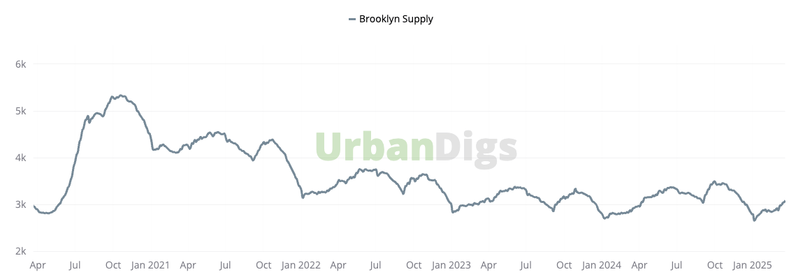 Brooklyn added 235 new listings this week—up 4.4% from the previous week—pushing total active inventory to 3,090, a 2.7% week-over-week increase. This steady growth in supply helps to balance the increase in buyer demand.