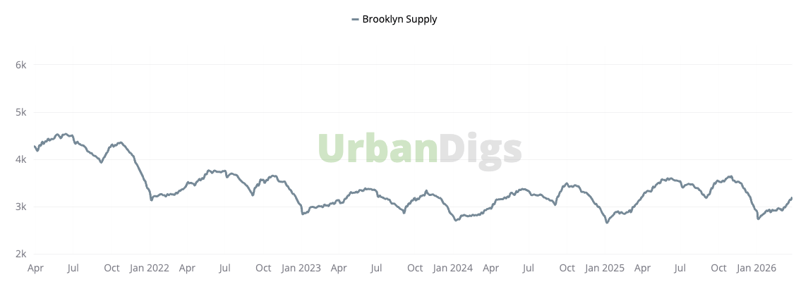 Brooklyn inventory increased to 3,215 homes (+3.2% WoW | +1.4% YoY), indicating continued supply growth compared to last year.