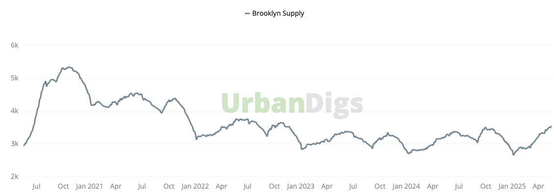 - Brooklyn also grew its inventory, up 1.7% to 3,558 listings. Brooklyn’s spring market tends to run longer than Manhattan’s, and this year is no different. Buyers still have time, but with Memorial Day coming up, new options may start to slow down soon.