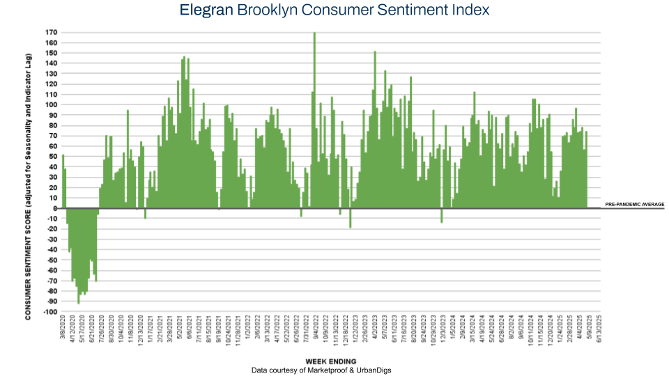 Brooklyn had a breakout week. Buyer confidence surged, with Elegran's Brooklyn Consumer Sentiment Index jumping from +78 to an eye-popping +124—far outpacing Manhattan and signaling serious optimism in the borough.