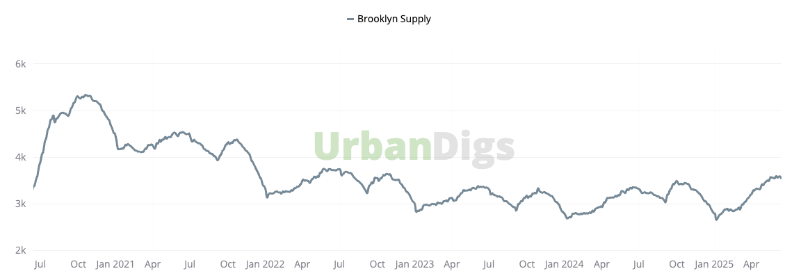 For the first time this season, Brooklyn’s housing supply shrank by 1.2% to 3,543 homes for sale. At the same time, new listings held steady, with 206 properties hitting the market this week, 7% more than the same time last year.
