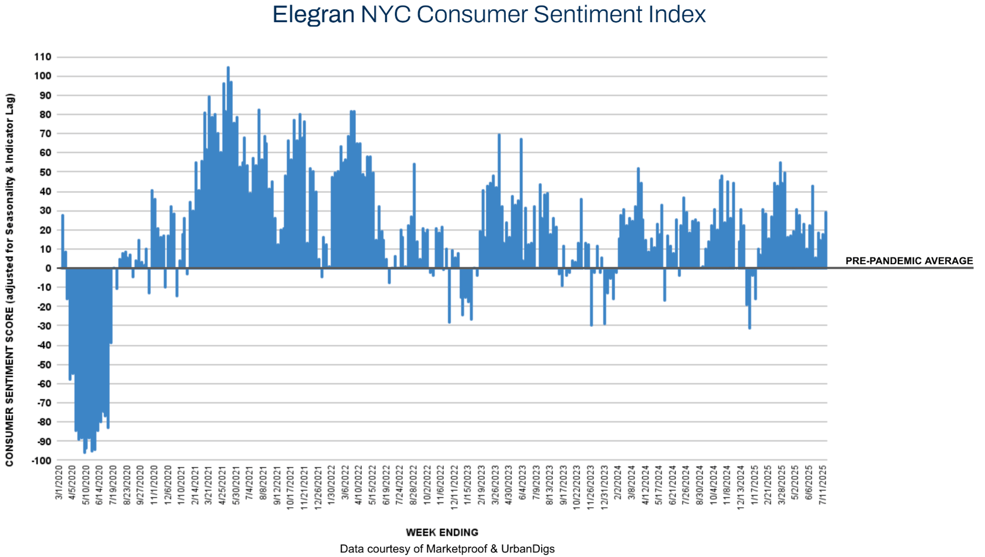 Lastly, based on a relatively active week across both boroughs, the combined Elegran Consumer Sentiment Index rose from +18 to +29.