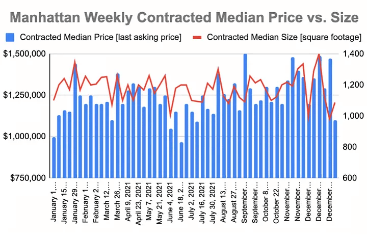 Of the contracts signed this week, and based on the last asking price, the (a) median price per square foot was $1,227, (b) the median price was $1.10M and © the median size was 1,087 square feet.