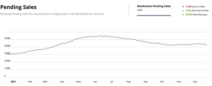 Overall supply and pending sales decreased this week in Manhattan and Brooklyn. As supply declines sharply, and pending sales stay relatively flat, Manhattan’s Market Pulse rose to 0.9 and Brooklyn’s remained at a record high of 1.37 for the second week in a row. The Market Pulse should begin to decrease as new inventory comes to market, increasing supply. This week, new supply in both Manhattan and Brooklyn increased as sellers began listing their homes with the holiday season behind us.