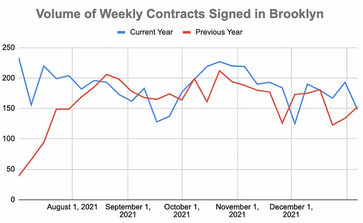 195 contracts were signed this week, a 1% increase from last week and a 16% decrease from last year.