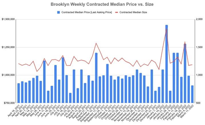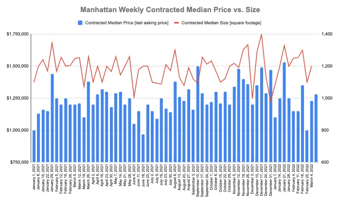 Of the contracts signed this week, and based on the last asking price, the (a) median price per square foot was $1,456, (b) the median price was $1.28M and © the median size was 1,182 square feet.