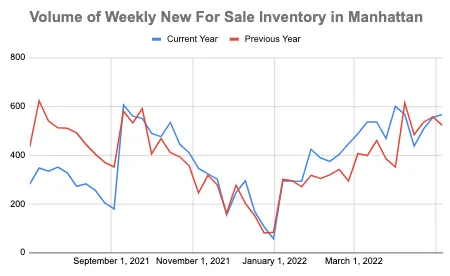 Decreased by nearly 1% this week to 6,080 units. This week 567 new listings came to market, 2% more than last week and 9% more compared to the same week last year.