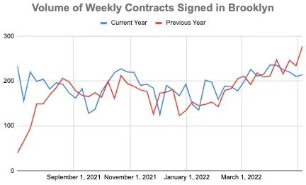 214 contracts were signed this week, the ninth week in a row with more than 200 contracts signed. This represents a 2% increase from last week and a 23% decrease from the same week last year.