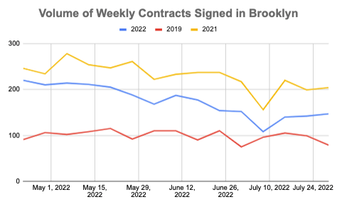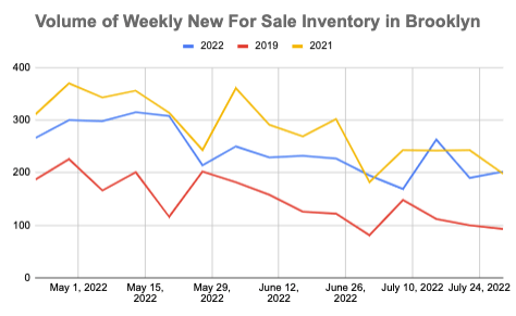 Last week 202 new listings came to market in Brooklyn, an increase of 6% compared to last week and 117% more than the same week in 2019.