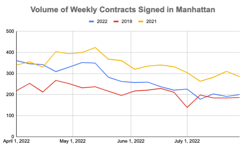 200 contracts were signed this week. This represents a 5% increase from last week and an 8% increase from the same week in 2019.