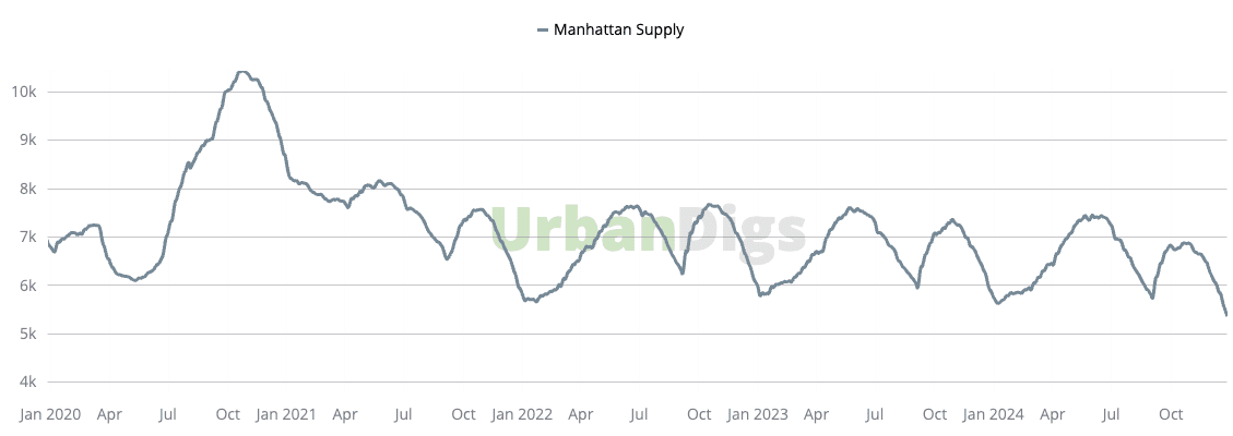 As expected during the holiday season, Manhattan’s residential inventory dipped by nearly 5%, leaving just 5,371 units on the market. New listings saw a substantial 74% week-over-week decline during the Christmas week and were down 23% compared to the same time last year. This reflects broader supply constraints, with 474 fewer properties available than this time last year.